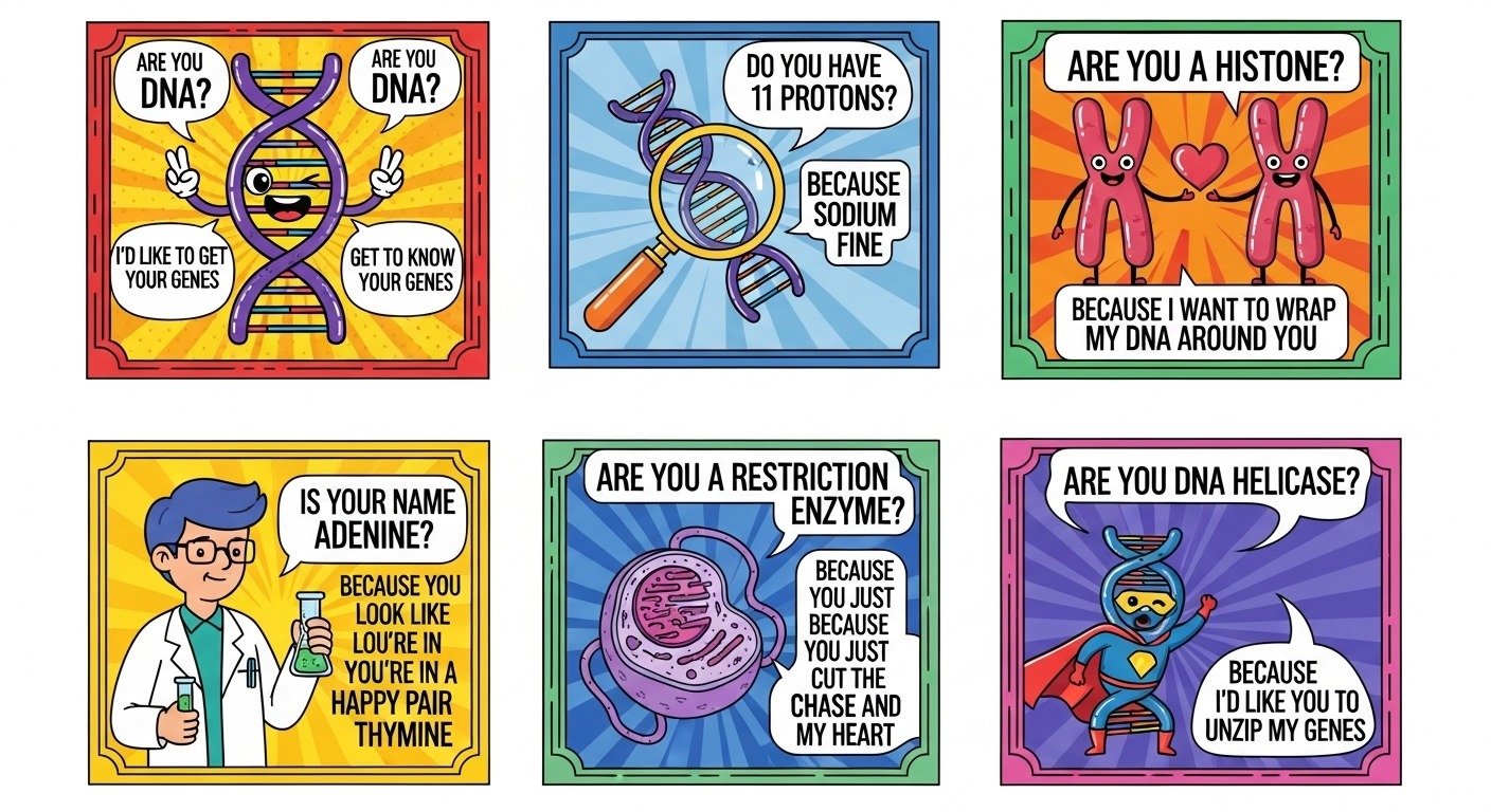 This collection of DNA pickup lines blends funny, cute, flirty, and nerdy science inspired rizz ideas to help readers start playful, smart conversations.